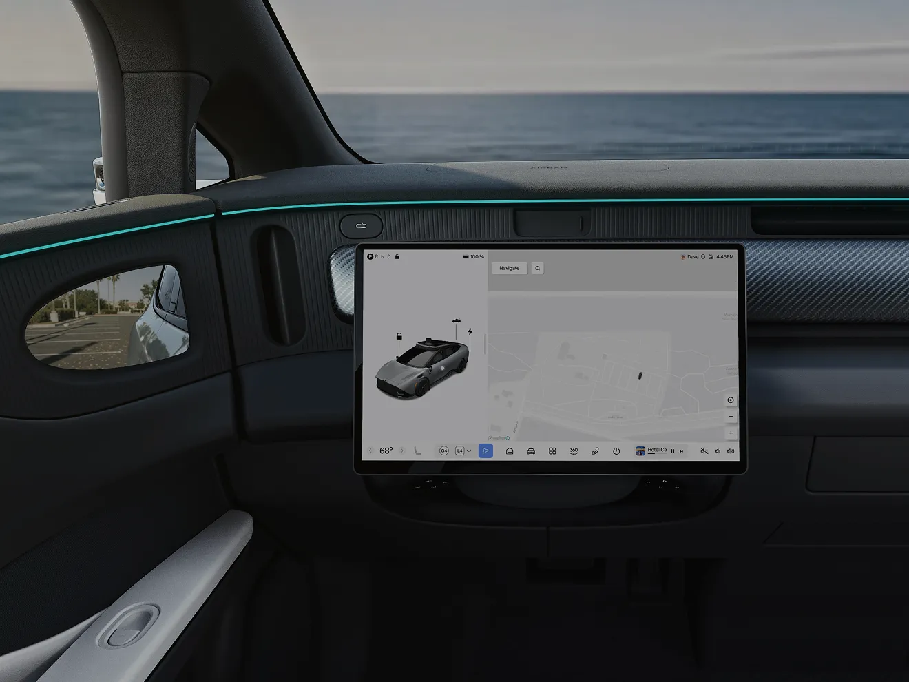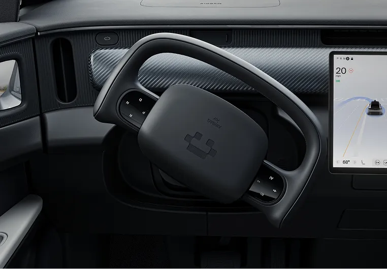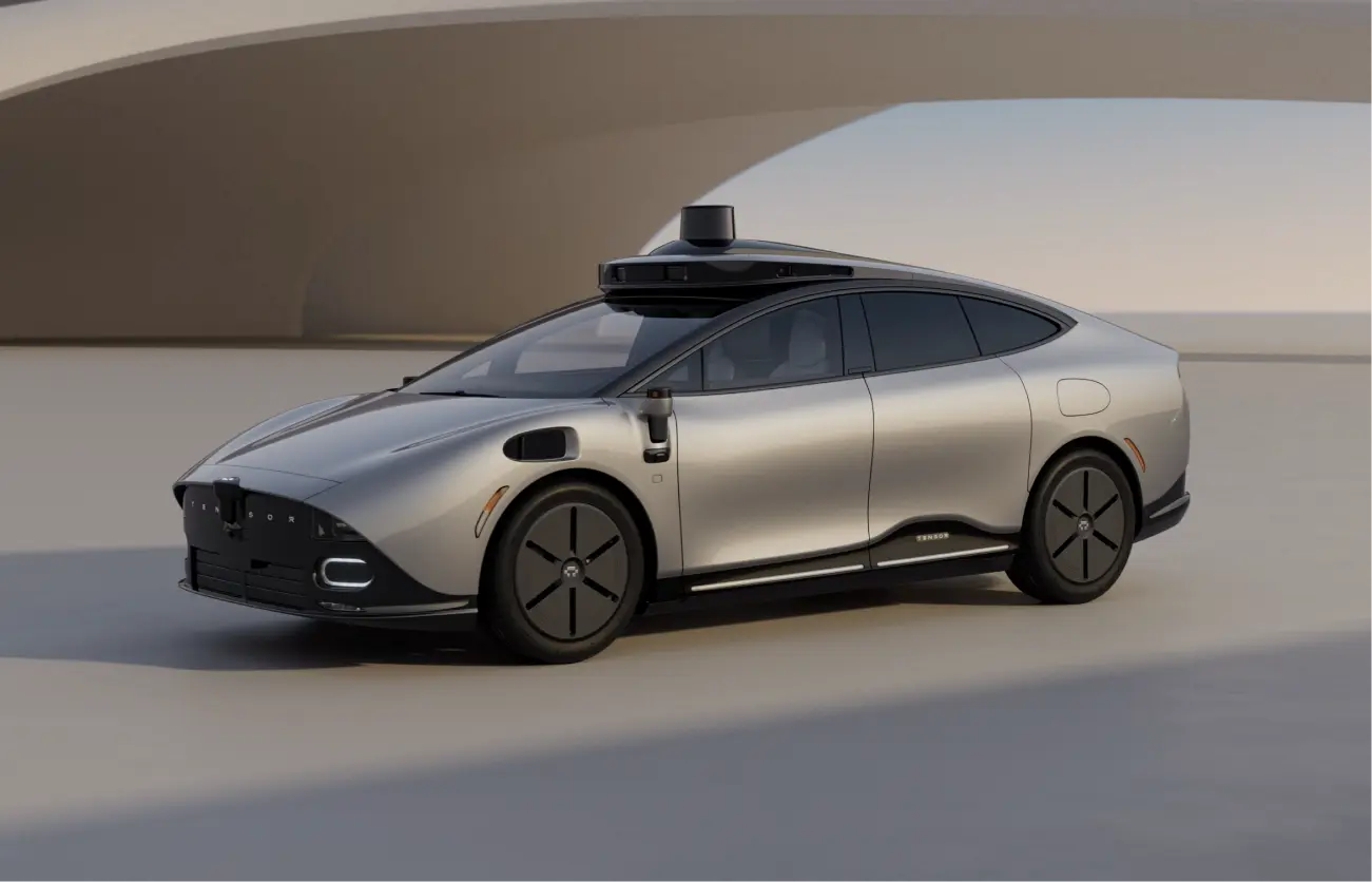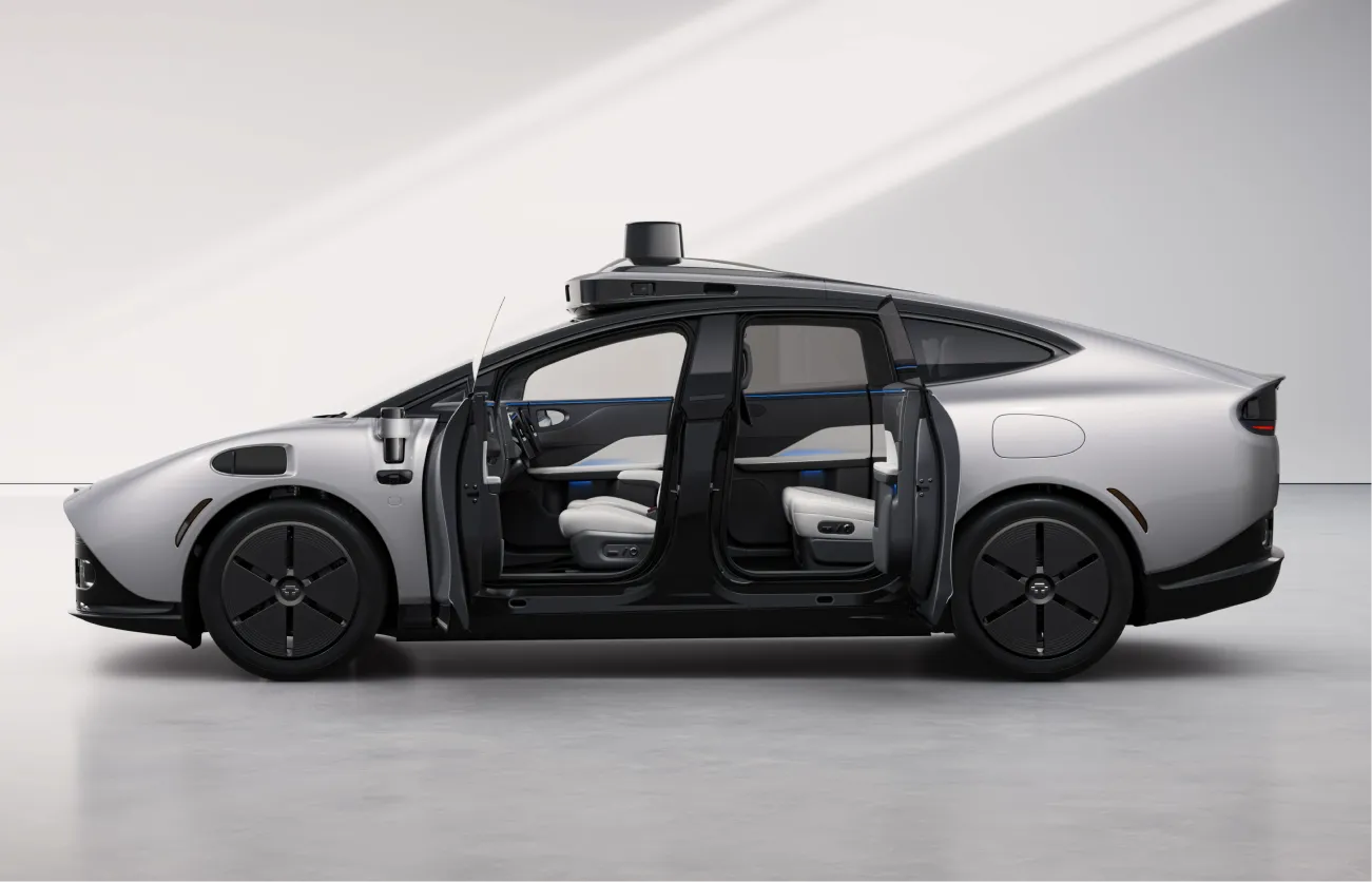 It was designed AI-first for autonomous driving capabilities, not heavily retrofitted on existing vehicles. Its minimalist exterior is a single, smooth liquid metal skin surrounding black sensor zones. Intelligence is incorporated everywhere, but the design is what catches your eye.