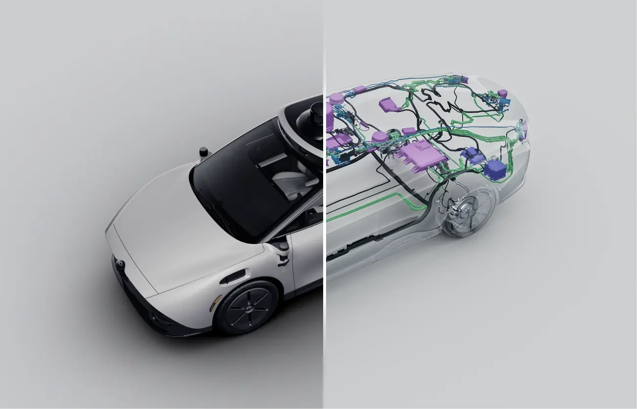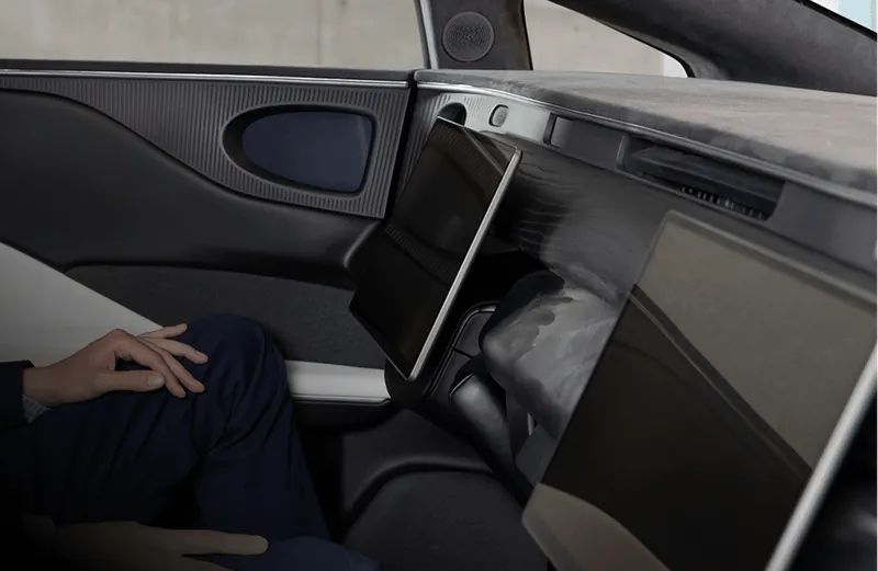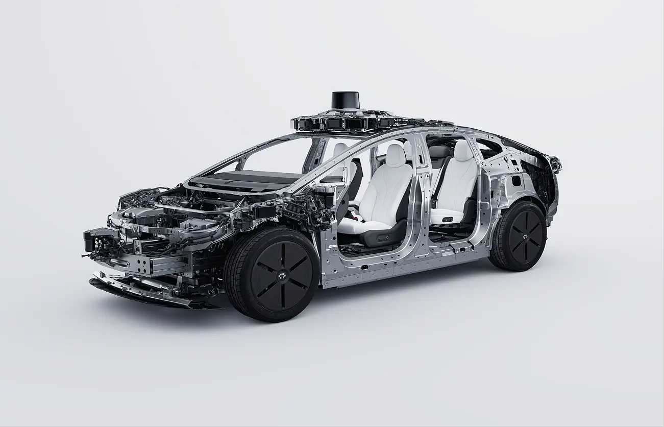 It was designed AI-first for autonomous driving capabilities, not heavily retrofitted on existing vehicles. Its minimalist exterior is a single, smooth liquid metal skin surrounding black sensor zones. Intelligence is incorporated everywhere, but the design is what catches your eye.