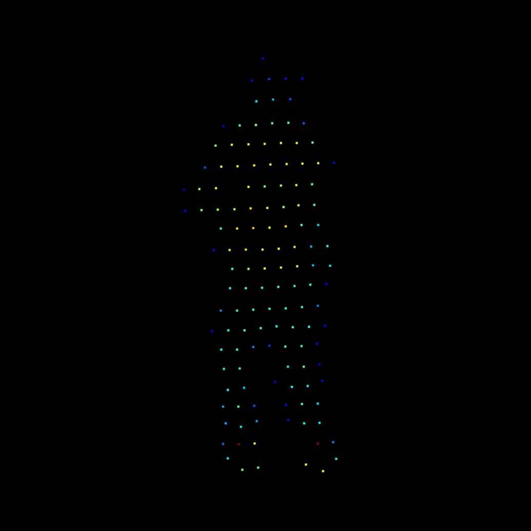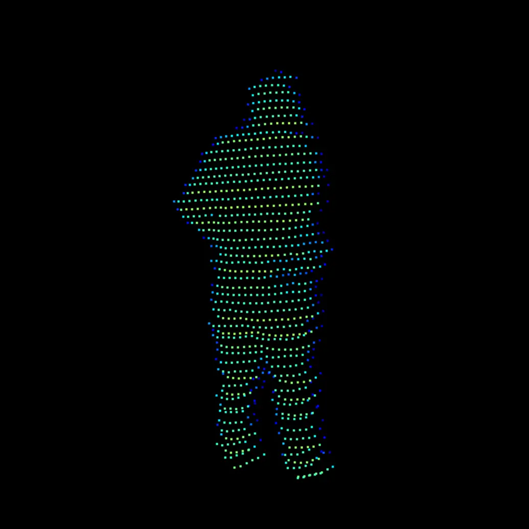 In this scenario, a pedestrian stands about 135 ft from the lidar. With today’s best off-the-shelf systems, the AI receives barely eight horizontal data points—hardly enough for reliable recognition. By contrast, our Tensor Halo Hyper-Lidar delivers dramatically higher resolution, empowering AI to detect and classify objects with unmatched clarity and confidence, eliminating ambiguity in critical situations.