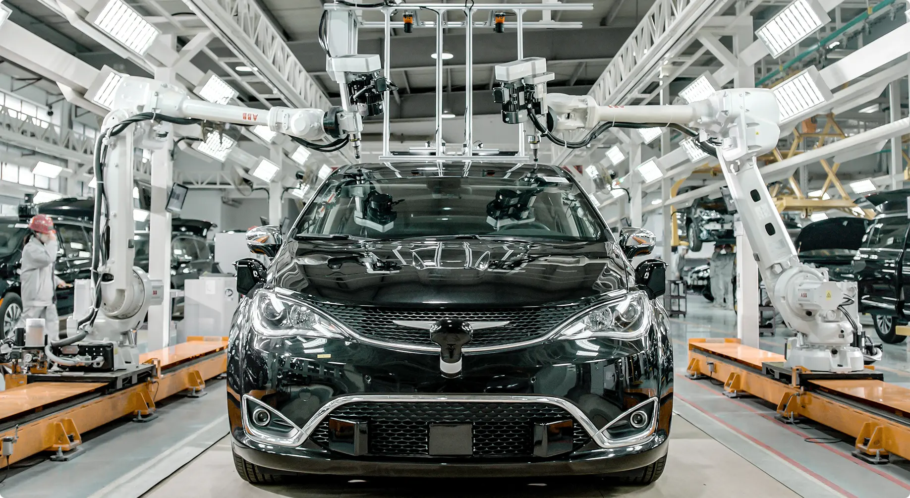 To ensure the production-level quality of the complex autonomous driving system, the production lines are equipped with a range of advanced production technologies and systems, including robots, assembly stations and conveyor systems.